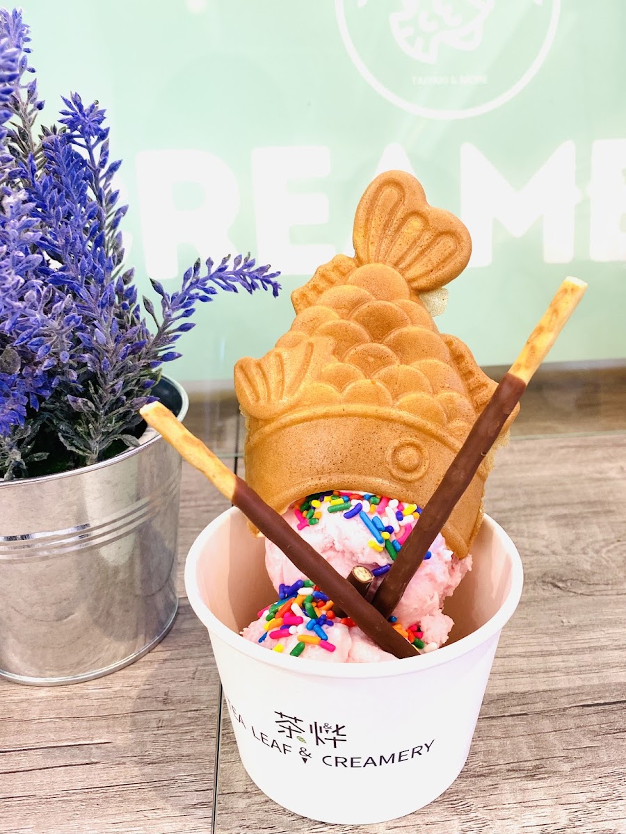 One of the standout offerings at Tea Leaf and Creamery is their Milk Tea, a classic favorite that never disappoints. It’s rich, creamy, and perfectly balanced with just the right amount of sweetness. If you’re in the mood for something a bit more adventurous, try the Taiyaki Ice Cream. This treat is a unique twist on the traditional fish-shaped pastry, filled with smooth, creamy ice cream that will leave you wanting more. The Mango Yogurt Tea is another must-try, offering a refreshing, fruity twist on the typical bubble tea with a yogurt base that adds a creamy depth to the flavor.
